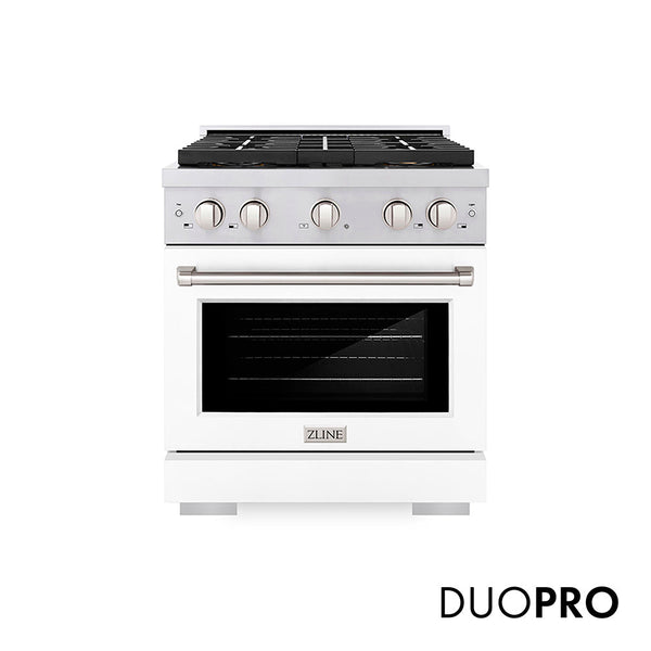 Luxury isn’t meant to be left desired—it’s meant to be attainable. The ZLINE 30 in. 4.2 cu. ft. Paramount Dual Fuel Range with 4 Burner DuoPro™ Cooktop and Electric Convection Oven with White Matte Door (PSDR-WM-30) features a high-powered gas cooktop with 4 hand-crafted Italian dual-ring brass burners and a versatile electric convection oven allowing you to master every meal. With ZLINE DuoPro™, every burner brings the performance you need—wherever you need it.