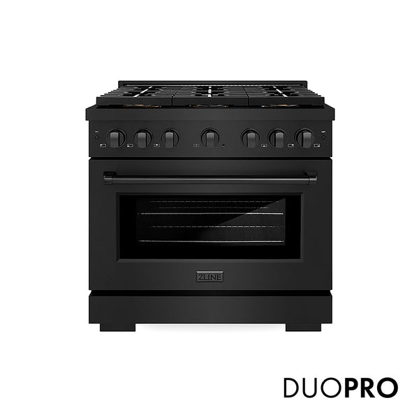 ZLINE 36 in. 5.2 cu. ft. Paramount Gas Range with 6 Burner DuoPro™ Cooktop and Convection Gas Oven in Black Stainless Steel (PSGRB-36)