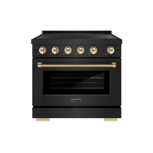 Luxury isn’t meant to be left desired—it’s meant to be attainable. The ZLINE Autograph Edition 36 in. 5.2 cu. ft. Paramount Induction Range with 5 Element Cooktop and Electric Convection Oven in Black Stainless Steel with Polished Gold Helix Handle and Knob Accents (SINRBZ-36-KG) combines the versatility of a nanotechnology-reinforced anti-scratch cooktop with anti-glare coating, an electric convection oven with digital thermostat technology, and a Horizon oven door window design allowing you to master every meal. With a modern, timeless style and refined functionality, ZLINE Paramount Induction Ranges are masterfully crafted to deliver an elevated culinary experience.