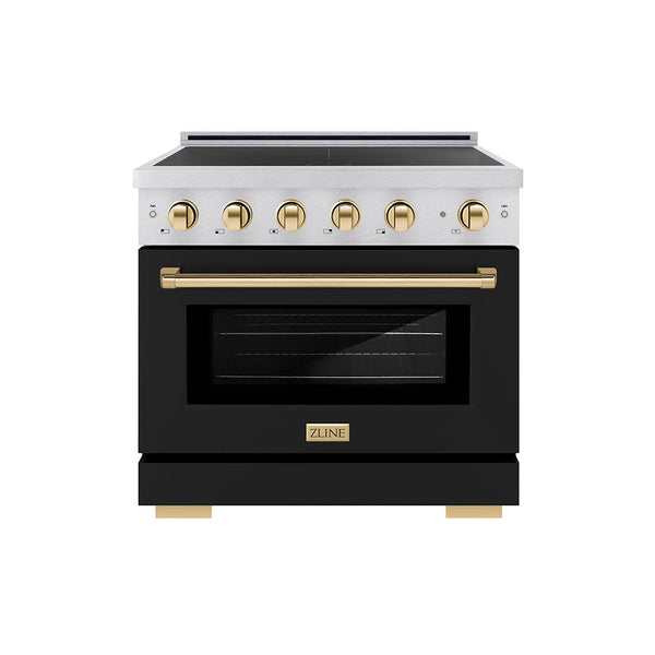 Luxury isn’t meant to be left desired—it’s meant to be attainable. The ZLINE Autograph Edition 36 in. 5.2 cu. ft. Paramount Induction Range with 5 Element Cooktop and Electric Convection Oven in Satin Stainless Steel with Black Matte Door and Polished Gold Accents (SINRSZ-BLM36-G) combines the versatility of a nanotechnology-reinforced anti-scratch cooktop with anti-glare coating, an electric convection oven with digital thermostat technology, and a Horizon oven door window design allowing you to master every meal. With a modern, timeless style and refined functionality, ZLINE Paramount Induction Ranges are masterfully crafted to deliver an elevated culinary experience.
