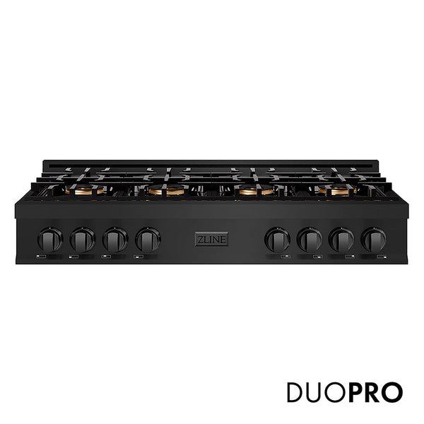 Luxury isn’t meant to be left desired—it’s meant to be attainable. The ZLINE 48 in. Classic Gas Rangetop with 8 Burner DuoPro™ Cooktop in Black Stainless Steel (PCRTB-48) features a high-powered gas cooktop with 8 hand-crafted Italian dual-ring brass burners and an expansive one-piece porcelain cooktop allowing you to master every meal. With ZLINE DuoPro™, every burner brings the performance you need—wherever you need it.