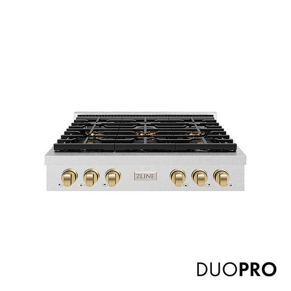 - DuoPro™ Cooktop Design - Transform your kitchen into a home chef’s dream with ZLINE DuoPro™, which delivers up to 130,000 BTUs of power, double the performance of most standard 36 in. gas cooktops
