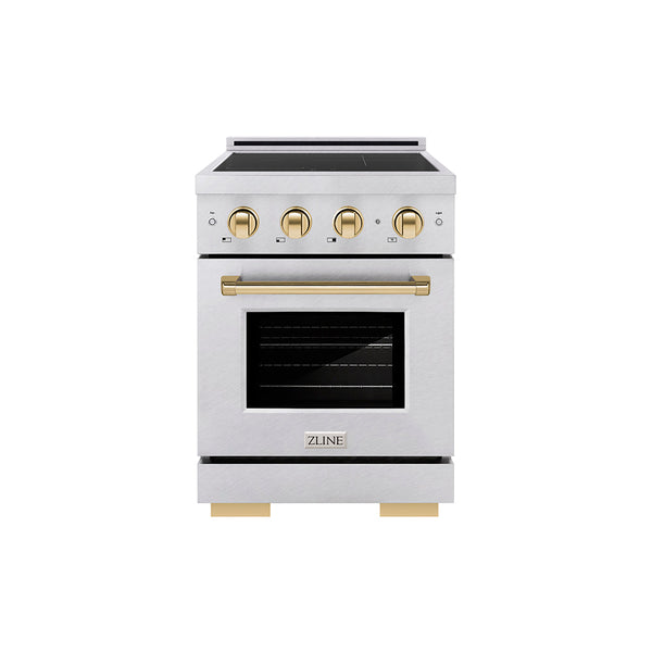 ZLINE Autograph Edition 24 in. 3.2 cu. ft. Paramount Induction Range with 3 Element Cooktop and Electric Convection Oven in Satin Stainless Steel with Polished Gold Accents (SINRSZ-24-G)