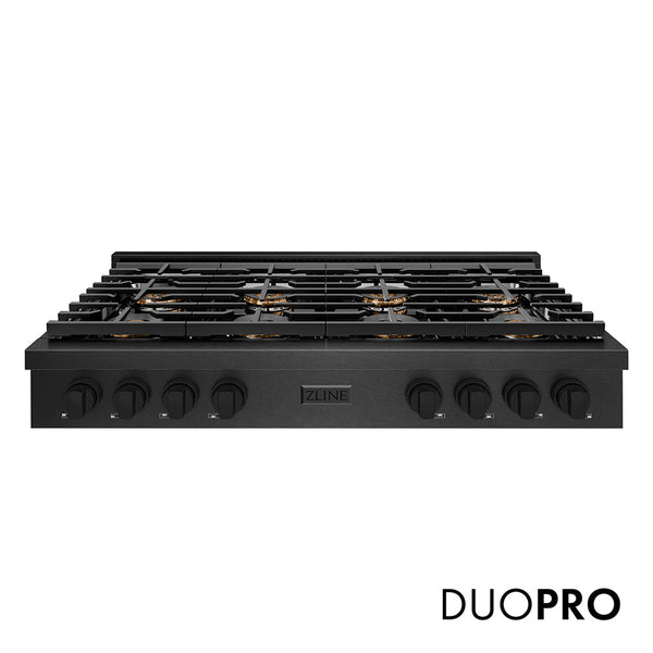 Luxury isn’t meant to be left desired—it’s meant to be attainable. The ZLINE 48 in. Paramount Gas Rangetop with 8 Burner DuoPro™ Cooktop in Black Satin Stainless Steel (PSRTBS-48) features a high-powered gas cooktop with 6 hand-crafted Italian dual-ring brass burners and an expansive one-piece porcelain cooktop allowing you to master every meal. With ZLINE DuoPro™, every burner brings the performance you need—wherever you need it.